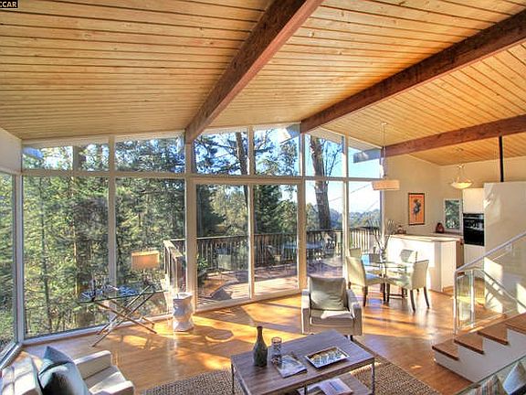 Skyline retreat in the Montclair Hills. Mid~Century modern w\ fantastic open floor plan. High ceilings w\ walls of glass. Wooded setting w\ partial bay view. Hardwood floors and new carpeting. Decks for entertaining. Walk to parks and trails. 5 minutes from Montclair Village. 2nd Open Sun 10th 2~5PM.
