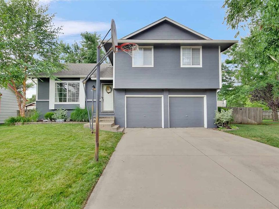GREAT updated 3 BR 2 BA home in Maize school district on quiet cul de-sac. What a perfect location! Close to shopping, parks schools, yet tucked away from the hustle and bustle. Sellers have done tons of updates. Exterior has new siding and paint as well as new guttering in the front. New cabinets in kitchen with new hardware and under-mount lights also a new sink and faucet. All interior has been newly painted including doors and new white trim. New bathroom vanities in main and master baths, ship-lap wall in child's bedroom. Storage shelves and utility closet installed in garage. Deck has been doubled in size. Back yard is beautiful with a gorgeous limestone patio area and complete fencing. There is even a large concrete dog kennel off of the back deck (as well as a kennel in the basement). Basement is a perfect family room getaway. New carpet and wonderful dry bar for watching the game and just hanging out with friends. You won't want to miss this perfect west side home!
