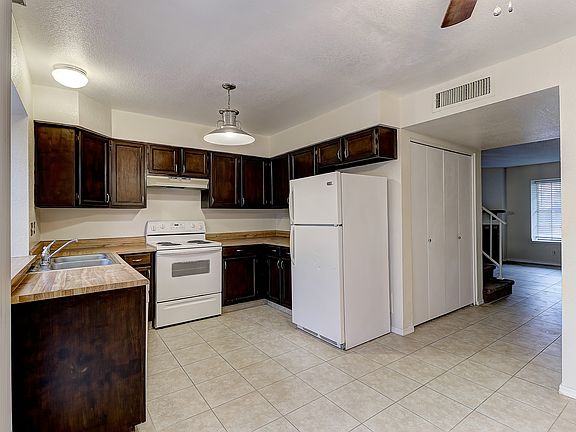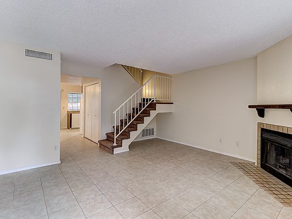 Open 2 story townhouse with 2 master bedrooms up stairs. Home features hard surface flooring throughout, fireplace, sunscreens, security screen, vaulted ceilings upstairs and ceiling fans. Fridge, washer, dryer are included with the rent.
