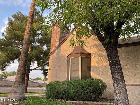 Take a walk in this beautiful townhome nestled in Peoria's Discovery at the Orchards. This community is surrounded by mature landscape, quiet walking paths, multiple pools and outdoor adobe fireplace. The cottage style home is a single story on a corner lot with your own private backyard patio, perfect for relaxing or grilling. Inside curl up next to a cozy wood burning fireplace which is sure to keep you warm all winter long. This country kitchen has a pantry, refrigerator, electric range, and brand new dishwasher. There is plenty of counter space for food prep and breakfast bar. Keep cool with a brand new AC unit, and wifi controlled ecobee thermostat installed last year. Location conveniently located by loop 101 and P83 entertainment district for easy access shopping, dining, & events.