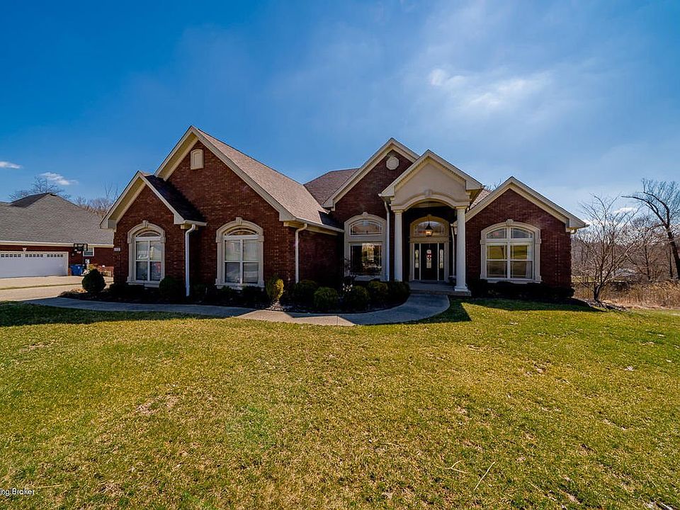 Don't delay--This exquisite spacious walk out ranch has numerous architectural features and is ready to move in to. You'll love the spacious, open floor plan! The inviting foyer has hardwood flooring and opens to the formal dining room--love that trim work! There's wainscotting below the crown molding and transom windows above the front door & dining room window. The great room features a hip vaulted ceiling, built in bookcases, a wall of glass to enjoy the views arched openings and access to the rear covered deck. Just grab your favorite beverage and relax. Enjoy cooking? You will in this kitchen! Cherry finished cabinetry, gas range, granite counter tops, ceramic tiled flooring, hip vaulted sunlit nook area, breakfast bar area, two pantry styled cabinets and pendant lighting are a