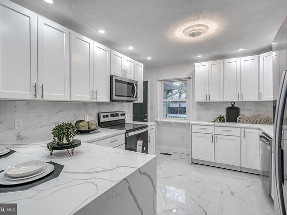Welcome to the beautifully updated home located in the Parkville Community of Baltimore County. When you enter the home you will find lots of natural light, custom designed ceiling, accent walls, and modern flooring throughout. The gourmet kitchen features a large breakfast bar, stainless steel appliances, quartz waterfall countertops and a beautiful backsplash. There are three bedrooms and two full bathrooms conveniently located on the first floor, one is a private and gorgeous primary bedroom with en-suite bathroom and large walk-in closet. The basement is fully finished with 2 bedrooms, a rec room, laundry room with a washer and dryer and a full bathroom. The spacious deck overlooks the extra-large, fenced in backyard and shed. Come check out this lovely home before it's too late!