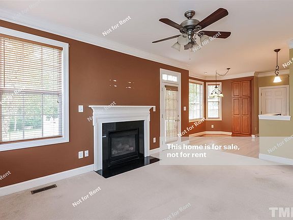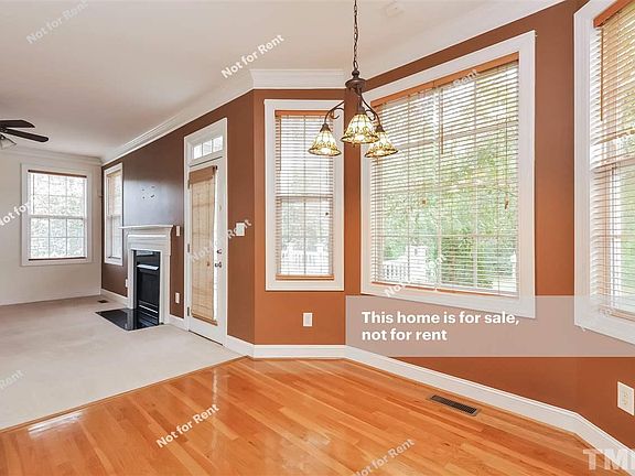 This Willow Spring home offers a deck, hardwood flooring, a fireplace, granite kitchen countertops, a den, and a two-car garage.