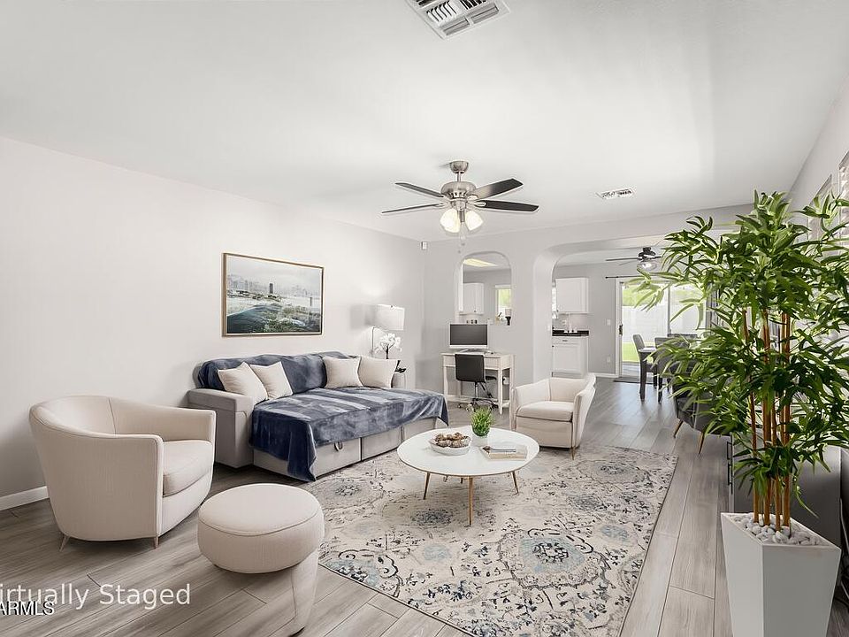 Bright, open, and beautifully updated, this 3-bedroom, 2-bathroom home features a spacious open-concept living area, fresh white kitchen cabinets, and stylish low-maintenance flooring throughout. Enjoy peace of mind with a newer roof and AC already in place as well as appliances and hot water heater! The split floor plan offers privacy, while the single-level layout makes daily living a breeze. Conveniently located near shopping, dining, and parks—this one is ready to welcome you home!