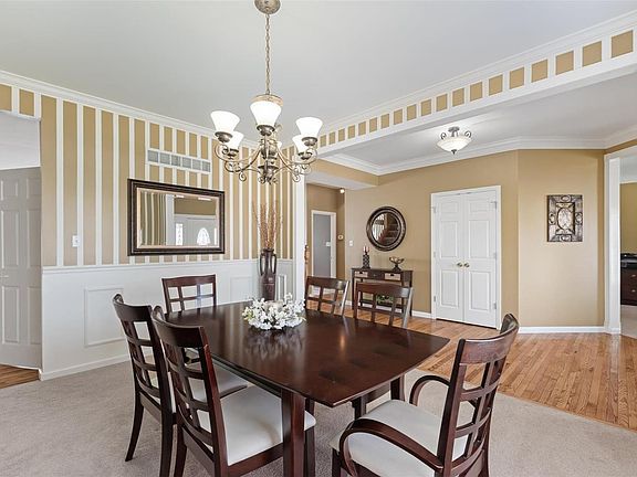 1.5 story, 5 bedroom, 3.5 bath walk out finished, lower level with nearly 4600 sq. feet of living space located in Wentzville school district. Open floor plan features refinished hardwood flooring in great room, breakfast room & kitchen. Living room/office has crown molding. Dining room features crown molding & special millwork. Great room with gas fireplace, recessed lighting, ceiling fan with light. Breakfast room has bay window with sliding glass door. Kitchen boasts 42" white cabinets, granite counter top, tile back splash, center island with breakfast bar, walk in pantry & main floor laundry. Master bedroom with bay window, crown molding, ceiling fan with light, walk in closet & en suite master bath. 2nd level features over sized loft & 3 additional bedrooms with walk in closets, ceiling fan with light & freshly painted interior. Hall bath has double sink & vanity. Finished lower level has family/rec, media, music room, 5th bedroom with walk in closet, full bath & office/workshop.