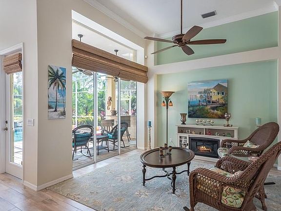 Tommy Bahama Style' three bedroom, three bath home plus den in stunning University Park Golf and Country Club offering 27 holes of championship golf, 11 Har-Tru lighted tennis courts and state of the art fitness center. This remodeled home features a modern open floor plan, expansive master suite with walk-in closets. Kitchen includes new top-end stainless steel appliances, a nine foot granite island with built in Wolf four burner gas stove and griddle.. New ceramic tile and Hunter Douglas window coverings throughout. Living area boasts surround sound, fireplace, multiple sitting areas and a breakfast nook overlooking the pool, lush vegetation and landscaped open space. More than 40 species of plants in this "Selby Gardens' look and feel yard" with low voltage night lighting front and back. Very private salt water pool with new Pebble Tech finish, Flagstone pavers, six person jacuzzi, two waterfalls, automated remote controlled equipment with multifunctional LED party/mood lighting. It is a perfect time of year to enjoy the amazing lanai, outdoor kitchen and bar with a 12'x20' Sunsetter awning. Owners invested more than $185k in remodeling. You will reap the benefits and significant financial value, in this move-in ready, fun and beautiful home. Welcome home.