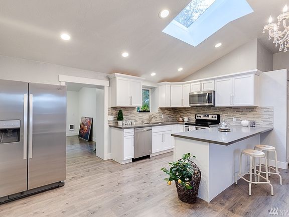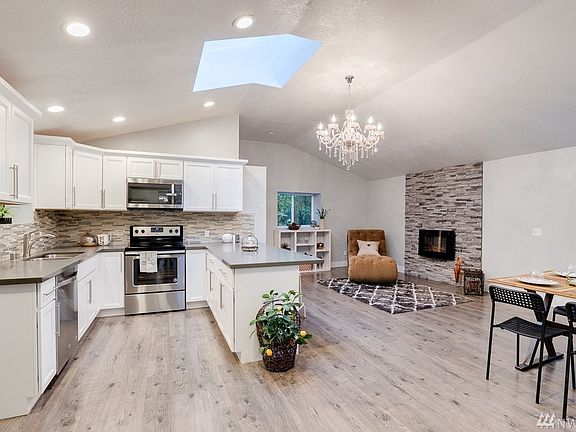 Check Out This Amazing Rambler w/ Vaulted Ceilings! Fully Remodeled 3 bed/2 bth home features new white kitchen cabinets, tile backsplash & all stainless steel appliances. Open floor plan w/ beautiful chandelier in center. Cultured stone w/ electric fireplace. Brand new roof & updated siding. Fresh interior/exterior paint. Beautiful yard w/ covered deck. Detached oversized 2 car garage in your fully fenced lot w/ LOTS of parking & NO HOA for your convenience.