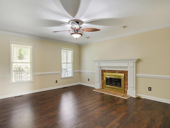 Immaculate & move in ready 4 bed 2 bath brick Cape Cod style home in convenient Fuquay Varina location. Nestled on .95 acre lot with deep backyard & seasonal views of Johnson Pond. Welcoming front porch. Oversized 2 car side entry garage. Crown molding & chair railing. Spacious family room features gas log fireplace. Bright & open eat-in kitchen with all appliances conveying. 1st floor primary suite + additional first floor bedroom/office. 2 large bedrooms upstairs. Plenty of storage. Large, vaulted screen porch with skylights. New heat pump 2017. Custom made Bali blinds. Gutter screens. Close to great shopping, dining, schools, parks and lakes. No city taxes. No HOA.