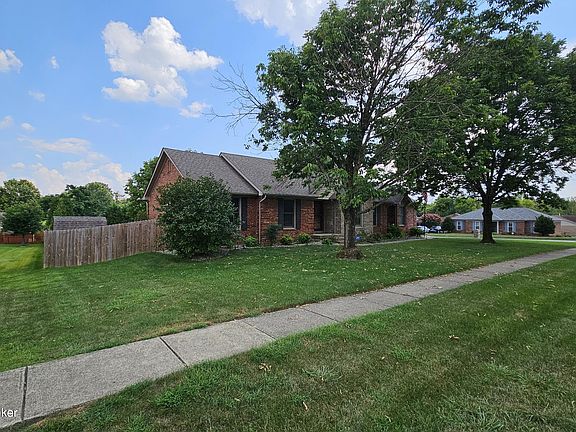 Welcome to 8113 Rome Beauty Way. This stunning, sprawling, brick ranch is situated on a corner lot in the Apple Valley subdivision. This family friendly neighborhood is located in Highview, not far from Fern Creek and McNeely Lake Park. A lovely, landscaped yard with mature trees greets you as you walk up. Heading inside, into the foyer, you will immediately notice how bright and airy this home is thanks to the abundant natural light and flowing floor plan. Just past the foyer is the highlight of this home, the great room. You will absolutely love the soaring vaulted ceiling, gleaming hardwood flooring, and stone gas fireplace. Open to the great room is the gorgeous eat-in kitchen. The kitchen offers ample cabinet and counter space, new stainless steel appliances, pantry, and dining area with bay window. A formal dining room with tray ceiling and room to seat 6 to 8 people connects to the kitchen as well. In between the foyer and dining room is a formal living room with vaulted ceiling and large Palladian window. Heading down the hall, off the great room, leads past the laundry closet, and down to the bedrooms and baths. The primary suite offers a spacious bedroom with tray ceiling and private bath with vanity with makeup counter, tile flooring, tub/shower combo, and large walk-in closet. There are two more generously sized bedrooms and a 2nd full bath. Brand new carpet is in all bedrooms. Heading downstairs brings you into a fabulous, daylight, finished basement. At the bottom of the stairs, you can head right into the kitchenette or left into the game room. The game room comes with a full sized pool table and built-in dartboard. Connecting to both the game room and kitchenette is an enormous family room offering numerous options for a man cave or children's play area. The basement also offers a large spare room with closet, that can be used as a 4th bedroom, and a 3rd full bath. The attached 2 car garage can hold just about any vehicle and has plenty of room left over for all of your lawn equipment. Head out back, through the great room door, and you will find yourself on a huge 19' x 31' deck. This two-tiered deck provides plenty of space for relaxing or entertaining and overlooks a privacy fenced yard. The yard also comes with a nice 8' x 10' storage shed. Don't miss out on this one and schedule a showing today!