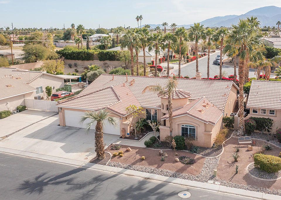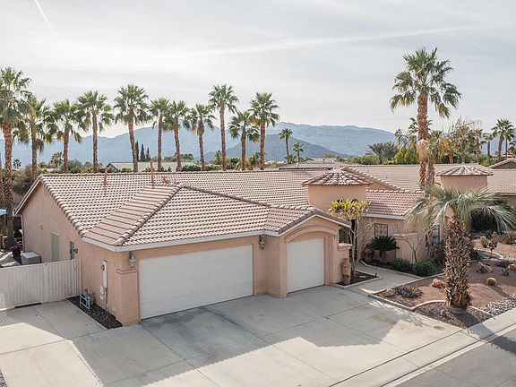 Imagine living in a quaint and small 55+ development in a home that is basically turnkey in condition and being offer fully furnished subject to seller's inventory. This home is beautiful and so well cared for. The home has no neighbor behind you, features an extra driveway for an RV, Boat, Adult fun toys - you name it. Three car garage plus the additional driveway leave a lot of room for guests, family and gatherings. Stunning pool/spa and outdoor BBQ all facing south for ultimate sun and gorgeous palm trees light up the area at night. Las Brisas II is a quiet gem 55+ development close to everything in the desert. Chef's gourmet kitchen opens up to the Great Room and dining area and looks out over the pool and southern mountain views. 4 Bedrooms are large (one is a separate and private Casita) and the Primary is separate from the other bedrooms for your privacy and comfort. Plus the glass sliding door from the Primary is a hop to the spa and the outdoor fireplace. Come take a look - you will be so glad that you did. This is an opportunity to purchase a wonderful home in a special 55+ development.