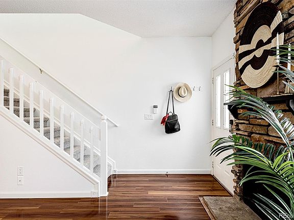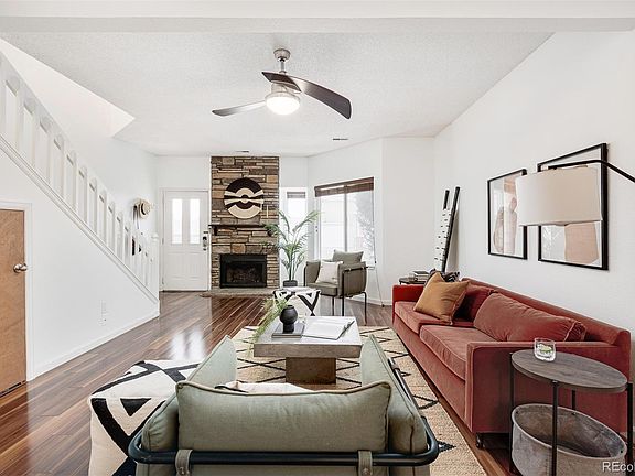 Brilliant brightness abounds in this Lake Arbor Fairways residence. Enter into an open and airy layout flowing w/ fresh paint and handsome flooring. Enjoy relaxing and entertaining in a spacious living area grounded by a cozy fireplace. An updated kitchen features granite countertops, all-white cabinetry and stainless steel appliances. Sliding glass doors in a sun-filled dining area promote indoor-outdoor connectivity to a private patio w/ new Trex decking. Imagine warm evenings spent dining al fresco w/ guests in this coveted space. Retreat upstairs to a primary suite boasting vaulted ceilings w/ skylights, a sitting area and a large walk-in closet. A secondary en-suite bedroom w/ a sizable closet offers the perfect setting for a private guest retreat, home office or fitness space. All new carpeting throughout the upper level and a one-car garage are added conveniences. Residents revel in an ideal location w/ close proximity to Lake Arbor Park and Arvada shopping and restaurants.