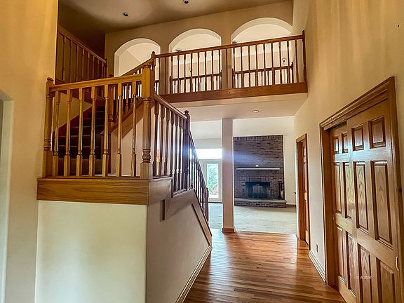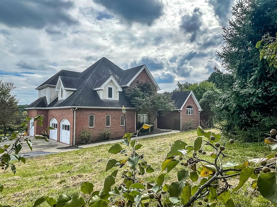 High Five! This spacious 5 bedroom brick home on a sprawling 5+ acres is just 5 minutes from town and won't last long on the market. Home boasts over 3800 s/f of living area that includes a first-floor owner's suite. Main level features vaulted-ceiling living room with brick fireplace, enormous kitchen with center island with cooktop, lots of cabinets and countertops, large pantry, double wall ovens, eat-in breakfast nook and amazing view of the back yards and fields. Flanking the kitchen on one side is a small office and on the other an enviable laundry room, with countertops, cabinets, and utility sink. Also off the kitchen is a commodious dining room that can easily seat 12, plus a large inviting foyer, half bath, and double coat closet. The first-floor owner's suite also has vaulted ceiling, gas fireplace, separate private deck, and en suite bathroom with double sinks, large tiled shower, jetted hot tub with beautiful windows, AND a huge walk-in closet. Upper level has full bathroom and 4 nice-sized bedrooms, two of which share a small private deck. Additional features include large deck, 2+ car garage, huge unfinished basement and acres of yard and fields.