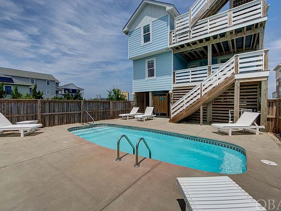 This 'better than new', very high quality, true second home, is a rare and unique modern Outer Banks home opportunity.......as all the work has been done for you....a custom designed & built home, with all high quality materials, offering private pool & elevator, landscaped and fenced grounds, very well furnished and accessorized inside and out, in a great Nags Head Semi-Oceanfront location, ready for immediate enjoyment! Condition and quality must be seen to be appreciated! Designed by Seaswept Designs, built by Victor Pugh, this property offers high quality, low maintenance, modern building materials, at just 5 years young, with very light second home use, providing 'ease of ownership' for years to come. Outside offers fully sodded & irrigated grounds, large fenced rear yard, salt water pool, ample front and rear decking, garage, tankless water heater, and large extra storage area. Exterior materials include Pella Windows and Sliders, Smartsiding, wrapped pilings, Architectural Grade roof shingles, gutters, & high-end, low maintenance composite decking and railings throughout, all the highest quality craftsmanship. Covered and uncovered front and rear decking, with ocean views, and sound / sunset views over parkland from the rear. The interior features Luxury Vinyl Plank flooring, wainscoting, NH trim patterns, ALL the bathrooms are high-end, with tile floors, quality vanities, custom mosaic tile showers, granite vanity tops, and quality fixtures. Upscale kitchen with granite counters, tile backsplash, quality Harmony wood cabinetry, crown molding & under cabinet lighting, and stainless appliances. Comfortable and open floorplan, providing expansive top floor great room with 14' ceilings, gas fireplace with custom wood and tile surround, open dining & bar top area, plenty of space for all. Top floor en-suite bedroom, and powder room. Mid level offers 3 additional comfortable en-suite bedrooms, and a rec / media room with granite wet bar, serviced by a full hall bathroom, providing common area or extra sleeping options, and laundry room. Elevator service from the ground floor to all levels, ample storage inside and out. Great Nags Head Semi-Oceanfront location, just one property from the Atlantic Ocean and wide South Nags Head Beaches, backing up to Cape Hatteras National Seashore parkland, centrally located walking distance to Jennette's Pier, Sam & Omie's, Owens, and all the Whalebone Junction area offers, and via detached bike path to Fish Head's at Outer Banks Pier for Oceanfront dining and drinks, close to Manteo and Oregon Inlet. This family property is fully furnished with high quality Manteo Furniture designer pieces, in like new condition, plenty of polywood exterior furniture & cushions, high quality electronics throughout (6 large mounted TV's), fully stocked kitchen, high quality window treatments, just sentimental personal original wall art is excluded from sale (see exclusions list). This property is clean, clean, clean...very rare to find a modern '5 yr young' home opportunity, and there is lot of value here, as this property could not be reproduced & refurnished for this value. Choose to continue lots of personal family use with this home, and / or take advantage of lucrative vacation rental income potential, as this desirable property offers everything vacationing guests desire, with $115,278 annual owner income rental projection from Village Realty. Act now to virtually or personally tour this unique opportunity.