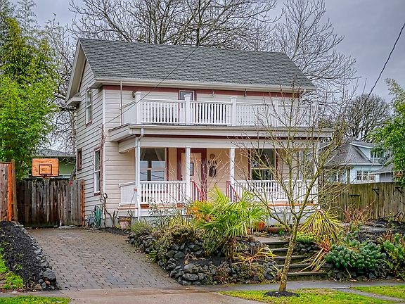 PENDING. Live in Sellwood, & walk to many amenities, close to trails, Sellwood Park and waterfront. Large, eat in kitchen. New carpet all bedrooms. Bamboo floor main level. Large front porch w/ new decking for watching the world go by. One bedroom has large upper balcony for views of city lights. Fenced and Private yard. A great home for a great life!
