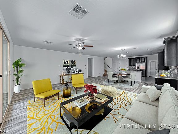 BEAUTIFUL HOME READY FOR IMMEDIATE MOVE IN. FEATURES TO INLCUDE: FRESHLY PAINTED INTERIOR, ALL NEW LUXURY VINYL PLANK FLOORING, NEW CARPET IN ALL 5 BEDROOMS, CHEFS DREAM KITCHEN WITH LARGE ISLAND, DOUBLE OVENS, COOKTOP, BUILT IN MICROWAVE, HUGE WALK IN PANTRY, MASTER SUITE DOWNSTAIRS WITH ITS OWN WASHER AND DRYER SET, LARGE WALK IN CLOSET AND VANITY, ALL BATHROOMS WITH NEW COUNTERTOPS AND UNDERMOUNT SINKS, OVERSIZED LOFT CAN BE USED AS A GREAT ROOM WITH BALCONY OVERLOOKING BEAUTIFUL VIEWS OF RED ROCK MOUNTAINS, ALL BEDROOMS NICE SIZED WITH GOOD CLOSET SPACE AND SOME WALK INS, UPSTAIRS LAUNDRY ROOM, BACKYARD WITH COVERED PATIO, FRESH LANDSCAPE. COMMUNITY PARK AND GATE.