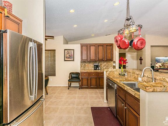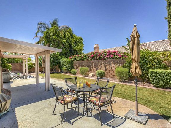 Welcome home to Las Brisas II, a gated, 55+ community in a wonderful location. This highly desirable, La Bella model features 4 bedrooms & 3 bathrooms in a very well laid out floor plan. The kitchen with breakfast nook, upgraded cabinets & granite along with stainless appliances, opens up the great room & dining area, which leads out to the spacious patio. Entertain your family and friends outside by firing up the grill and enjoying the sunsets. There's plenty of room for a pool or spa alongside the citrus trees! Inside, the features include large tile, wood-look floors, & ceiling fans throughout. The two guests room inside are just the right size as is the separate casita suite with a private entrance. Bonus is a huge side area where you can park your RV behind gates along with the three car garage. Low HOA's on top of it. Close to shopping, dining, world-class golf, tennis, hiking, biking & all that the desert has to offer.