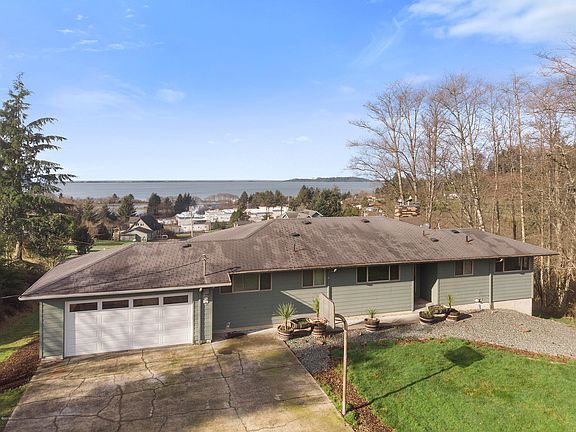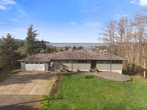 Spacious, warm & welcoming home on almost an acre features a panoramic view of Tillamook Bay & Maxwell Mountain. Slate tile fireplace, wood trim, two full baths up, one down, oversized double garage. Lower floor has dark room and 930 sqft unfinished basement is opportunity to add living area & value. Some elements of the home are dated, some updated. Great opportunity to remodel & make it your creative own. Enjoy easy hikes at Kilchis Point Reserve, fresh seafood at Pacific Oyster, fishing & kayaking on Tillamook Bay. Rockaway's 7-mile long beach 10 minutes drive away. Ah, the Coast Life!