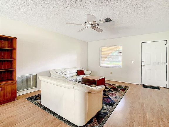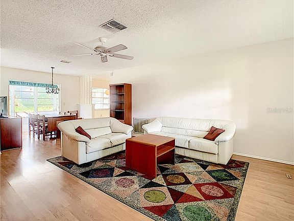 2/2/2 at the end of a quiet cul-de-sac in the desirable 55 and over community of Timber Oaks. Mature landscaping surrounds the property and has brand new carpet in bedrooms; laminate wood flooring in main living areas, new faux wood blinds, new ceiling fans, fresh interior paint throughout, new flat deck patio roof and a brand new AC unit installed. Roof is just 10 years old. Enclosed Florida room is a large bonus room and not included in the square footage. Timber Oaks is an active community with clubhouse that offers a fitness center, crafting classes, billiards room, and many activities, dances, and card games to keep you busy. There is a local community pool exclusive to Spanish gate residents to enjoy, as well as a large community pool at the clubhouse with hot tub. Community has so much to offer. Great location and close to hospitals, restaurants and shopping. Priced to sell!