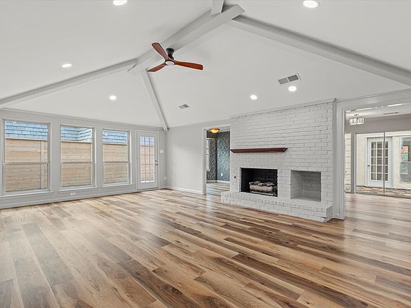 Discover this extensively renovated single-story home on a peaceful corner lot in highly sought-after Richardson ISD. Breathtaking wood-look Luxury Vinyl Plank floors welcome you into this beautifully updated residence, where every detail has been thoughtfully designed for style and functionality. The spacious living room features vaulted, beamed ceilings, a cozy gas-starting fireplace, and open sightlines to the formal dining area—perfect for entertaining. Double doors lead to the exceptional gourmet kitchen showcasing sleek LG stainless steel appliances, granite countertops, a gas cooktop with pot filler, convection oven, and modern cabinetry with a center island. Just off the breakfast room, a versatile flex space with a dry bar and beverage fridge offers the perfect spot for a reading nook, sitting area, or home office. Retreat to the serene primary suite complete with dual walk-in closets and a luxurious spa-inspired bath featuring Quartz-topped vanities, a free-standing soaking tub, and an oversized rain shower. Two additional bedrooms share an updated Jack & Jill bath. Enjoy movie nights or family gatherings in the spacious bonus room with built-in shelving and ample storage. Relax in the tranquil atrium—an ideal spot for morning coffee or evening unwinding. Recent updates completed in Oct. 2025 include a new roof, gutters, windows, insulation, flooring, automated irrigation system, and fresh paint throughout. Conveniently located near major highways, top-rated schools, dining, and entertainment—this home truly has it all.