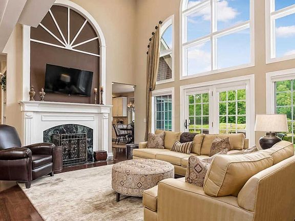 Estate home on #7 overlooking water and green. Cul de sac, 1/2 acre lot. First floor master, finished lower level and private patio to enjoy the views. Many major updates including but not limited to wide plank, hickory hardwood flooring, new granite, gourmet gas stove, backsplash and other major kitchen updates, almost all new paint, light fixtures and other flooring, tankless water heater, radon system in place, gutter guards new hardware throughout master bath updates and so much more. Must see to appreciate