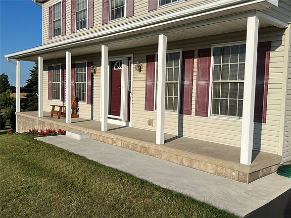 Spectacular offering, 2005 4 bedroom 2.5 bath Wallco Construction built colonial, Majestic acre plus lot sits up high and dry with beautiful country views, farmer field and woods backdrop. Warner Rd is a quiet rural Rd with convenience to I490 and I90. Popular great room floor plan, formal dining, primary suite offers full bath and walk in closet. Inviting open front porch, spacious 2020 poured back patio. new high efficient furnace 3/17. tear off roof 4/2017 Total Propane and electric averages $237/month, high speed internet. Delayed negotiations begin Tuesday 9/26 at noon. Seller desire 11/10 closing, all appliances included, tv mounts and tv excluded.