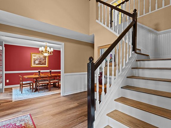 Meticulously maintained and thoughtfully upgraded home in sought-after Emerald Chase, North Raleigh. From its colonial-contemporary northern exposure front exterior to its modern amenities and cozy traditional-transitional interior touches, it is a dream residence. Overall, this home offers a perfect blend of classic charm with modern convenience, making it an ideal haven from the busy day to day grind; Exterior Features: Colonial/Contemporary style front with three grand two-story columns and northern exposure; Front porch; Wrap-around side/back deck connecting to a screened-in porch with vaulted ceiling; Lush backyard, dotted with mature trees offering shade, privacy, and tranquility; Well-maintained and beautifully landscaped in a quiet wooded cul-de-sac lot; Paths & sidewalks leading to nearby amenities such as numerous grocery, shopping and restaurant options; Interior Features: Traditional/Transitional floor plan with 4 Bedrooms, 2.5 baths; Impressive two-story entrance-way foyer with a suspended chandelier, wainscotting and open quarter-turn staircase; Naturally Aged Concord Waterford LVP flooring throughout main level and upstairs (no carpet); Updated/renovated kitchen and all bathrooms; Gourmet kitchen & breakfast area with maple wood cabinets, center island, built-in wine rack, pantry, built-in desk, granite countertops, tile backsplash, ceramic tile flooring, stainless steel appliances, bay window above sink and sliding glass door access to back deck; Separate dining room with crown molding and chair molding; Family room with crown molding, chair molding and whitewashed brick masonry wood-burning fireplace; Living room with crown molding, chair molding and bay window; Office with French doors, crown molding, chair molding and built-in bookcase; Main level powder room with copper sink, hardwood flooring and granite countertops; Owners' suite with vaulted ceiling in both the bedroom and bathroom. Bathroom skylight, huge dual vanity, granite countertops, stone travertine flooring, Jacuzzi tub, toilet water closet and walk-in closet; Upstairs secondary bathroom with ceramic tile flooring, tub/shower combo and granite countertops; Additional Features: Insulated Low-E double-paned replacement vinyl windows with plantation shutters throughout; Screened-in porch with vaulted ceiling attached to the main deck and family room is permitted; Smooth ceilings throughout (popcorn ceilings removed); LeafGuard ''Get it and forget it'' Gutter guards; Brinks/ADT whole home security system includes entry sensors on windows and doors and indoor motion detectors - to obtain additional benefits including automatic call 911 requires a subscription; Upstairs laundry room has both electric and natural gas line hookup for dryer. Laundry room was relocated by previous owner from kitchen closet area and may not be permitted so it is not counted in the square footage; Kitchen has both electric and natural gas line hookup for range; HVAC Trane System, natural gas furnace, whole-house air filtration system, dual-zone, and programmable thermostats; Natural gas hot water heater; Crawl space with full-sized door access, vapor barrier, and dehumidifier adds extra storage;