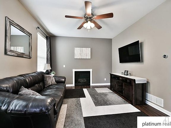 - Living Room Desc: Fireplace, Ceiling Fans, Window Covering, Vinyl Floor