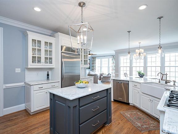 Exquisite 1st floor Master plan, 4200 sqft above grade+2000sqft finished basement... Custom, 6BRs+5.5Baths+Media Rm+Bonus PLUS Basement, WOW! Wet Bar, Hardwoods, Quartz White Kitchen, Dacor SS appl, Built-in frig, Marble, Crown throughout, Exercise Rm, Screened Porch, Outdoor living, Walk-in Storage, Fully Fenced Flat Yard, New Roof, New HVAC, New Water Heater, New Carpets+Paint, Excellent location across from Umstead Park, minutes from RDU/RTP, near downtown. Move-In Ready, backs to conservatory, WOW!