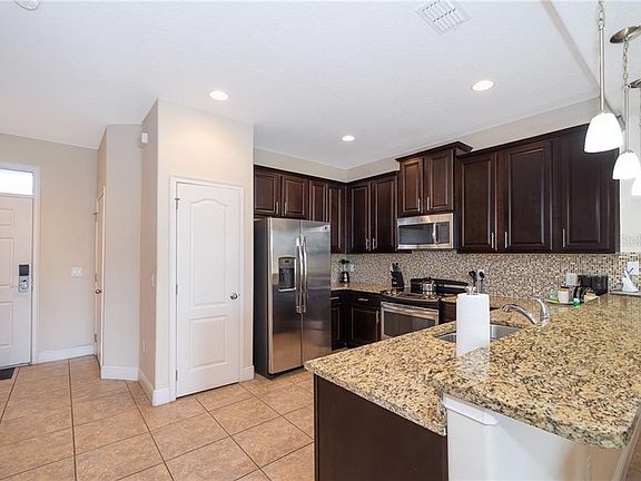 This's it!! Come and enjoy this charming fully furnished luxury townhome in the Fountains at ChampionGate. It features a gourmet kitchen with granite countertops with tile backsplash, stainless steel appliances, and spacious back yard patio with WATER VIEW. The classy master suite with double vanities, two additional bedrooms, and a refined full bath complete the second floor. Community has its own clubhouse, pool, conference room, and fitness center. Walking distance to restaurants and a major shopping center. Close to Disney parks, SeaWorld, Reunion Resort Golf Courses and ChampionsGate Golf Courses. Motivated Seller, schedule a showing today!!