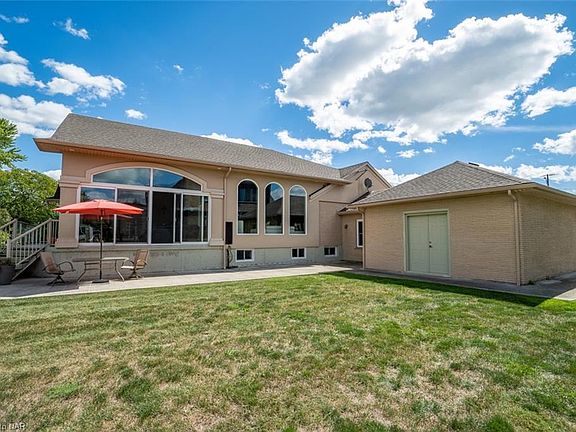 Sprawling brick bungalow with attached garage with a panoramic view of the Niagara River & walking trail. This well-maintained home offers 4 bedrooms, 3 bathrooms & fully finished basement. Back sunroom has large windows allowing in all the natural light & beauty of the outdoors. Spacious open concept living room with gas fireplace. The master retreat is equipped with ensuite bathroom, whirlpool tub, glass shower & elegant marble floors & shares a two-sided fireplace. Other noteworthy features include gleaming marble & hardwood throughout home, kitchen with loads of cabinetry, granite countertops, marble backsplash & granite island with LED lights, fully finished basement with great in-law potential with bedroom, bathroom & family room with fireplace.