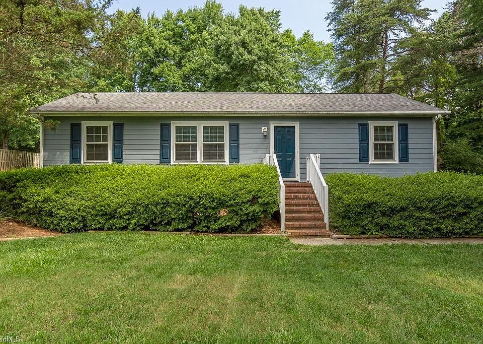 GREAT MOVE IN READY HOME CONVENIENT TO SHOPPING/RESTAURANTS AND GREENSBORO/TRIAD AIRPORT. Great location and sits back off the road to give you plenty of privacy in front and backyard. Close to 1100 sq ft! 2 bedrooms with an additional LARGE office with built in shelving. Could be used as a 3rd bedroom. Comfortable living room for growing family. Kitchen features dishwasher, range & refrigerator. Separate laundry room with built in shelving for additional storage. Outside entry utility room to store lawnmower/tools. Double detached carport AND a single detached carport. Hardie board siding and double pane windows installed approx 5 years ago. New well pump in 2015. New roof in 2010. New motor in A/C 2013.