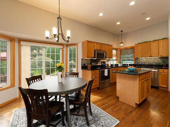 Gorgeous modified two story home on a professionally landscaped private lot. Updates include Refinished Hardwood Flooring, Carpet, Paint, Radon, RO Water System, Insulated and heated garage, Stone surround gas fireplace and custom built-in cabinets, Door Knobs and hinges, Furnace, Hot Water Heater, Water Softener, Washer and Dryer, Gutters, Garage door opener, tile backsplash, blinds and more. The upper level has 3 bedrooms including a Private Master Suite with a walk-in closet and separate bath. The master bath has dual vanities and a separate whirlpool tub and shower. The main floor offers a large Kitchen with granite countertops and stainless appliances. A very nice main living room with a fireplace and built-in cabinets. Formal and Informal Dining areas. Office. Sitting Room. Main floor laundry. The lower level offers a recreation room or 5th Bedroom En-suite with a ¾ Bath. Nice storage room. The massive paver patio provides a great space to entertain.