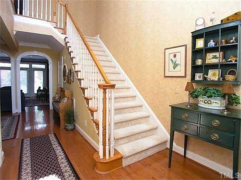 Great townhouse in the heart of North Raleigh. The brick courtyard leads to the front entry. There are beautiful arched entries from the formal dining room to the living room. You will find a cozy gas log fireplace with marble surround in the living room. The kitchen features granite counterstops, a tile floor, stainless steel appliances and counter seating. There is beautiful hardwood flooring in the living room, dining room and foyer. The spacious master suite has a walk in closet and in the bath his and her vanities, tile floor, whirlpool & separate shower. The loft area makes a great office area, exercise space or sitting room. The patio overlooks the fenced back yard. Call to see this lovely home today!