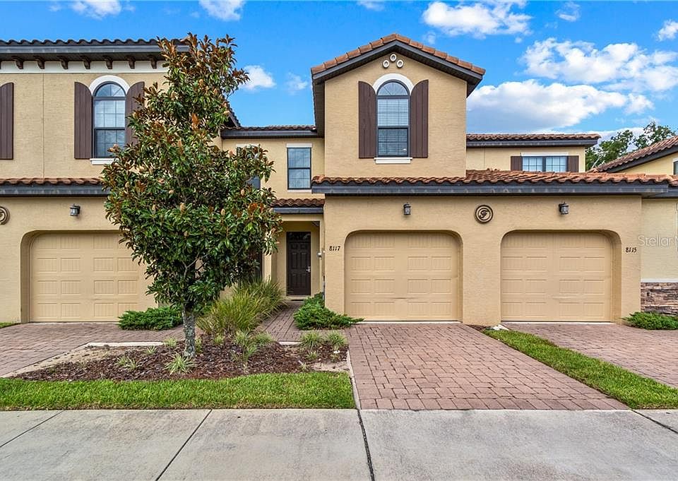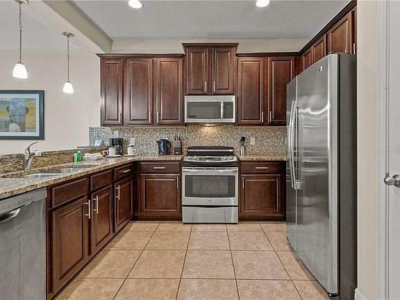 Fantastic investment opportunity in The Fountains at Champions Gate! You will fall in love with this beautiful townhome that comes fully furnished and loaded with beautiful upgrades. This home has been on a short-term rental program but would also make a great vacation home or single-family residence. Located minutes from the Disney Parks, this home's prime location puts you in the heart of wonderful Central Florida attractions, including the neighboring resort where you can enjoy championship golf courses, swimming in the zero-entry pool, dining, spa treatments and so much more. You don't even have to leave the gated complex, as the home is close to the community clubhouse where you can enjoy a fitness center and beautiful community pool. Inside the home, enjoy 3-bedrooms/2.5 baths and 1,535 sq. ft. of beautiful living space. The elegant kitchen is at the center of the home and features stainless steel appliances, granite countertops with a beautiful tile backsplash, upgraded cabinetry with crown molding, a breakfast bar for seating and closet pantry. Enjoy plenty of room for both living and dining in the large great room featuring tray ceilings and recessed lighting. Large sliding doors lead to a covered patio and private backyard. You will enjoy the natural light and open feel to the first floor which also offers a half bath downstairs for guests. All bedrooms are located on the second floor including the spacious master suite featuring tray ceilings, large windows offering beautiful views, a large closet and adjoining bathroom with dual granite vanities. The washer and dryer are located near all of the bedrooms for convenience and can be completely hidden behind double doors. Two more bedrooms and a beautiful guest bath are located away from the master including a beautiful guest bathroom with a granite vanity. This home is in a prime location and will not be on the market long! Call us today for your private tour!