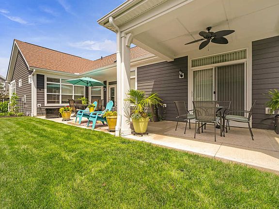 Why wait to build when you can own this stunning Palazzo free standing condo with $86,000 in upgrades? 2,282 sq ft of finished living space, plus tons of storage or workshop in lower level! Gorgeous 4-season room w/French Doors off living room. Kitchen with island, & fully equipped energy efficient appliances, w/double ovens. Upgraded cabinet package & beautiful hardwood floors in main living areas. Owner's suite w/walk-in closet & shower, and sliders to covered courtyard area. Expansive laundry room on main level. Professionally finished lower level with 1/2 bath and egress. Very private courtyard with spacious patio and green space. This home is immaculate, shows like a model! Beautiful community to live in w/amazing clubhouse, pool & work out facility, & activities. Close to shopping!