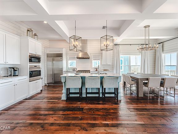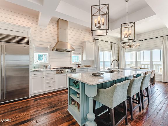 UNDER CONTRACT ~ TAKING BACKUPS! This is undoubtedly one of the nicest houses you'll find from Mexico Beach to St. Joe Beach. Everything in this home is custom and top of the line. The high-end finishes start in the foyer with high-end dirty top pine floors and well-appointed elevator and are found from top to bottom with no expenses spared. You'll find Wolf appliances, marble countertops, designer lighting, Restoration Hardware furnishings and much more. The entire 4th floor is a master bedroom with a sitting area and bath that's to die for with marble floors, soaking tub, huge closet, double tiled shower and more. Each floor has a large deck overlooking the Gulf. All bedrooms have en suite bathrooms and this home is being sold fully furnished and equipped with a small list of exclusions. Check out virtual tour! Check out virtual tour!