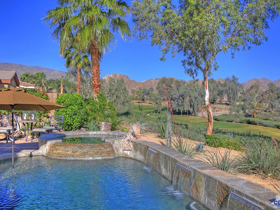 Enjoy the resort lifestyle in this beautiful 1693 sq.ft. Monterey floor plan with 2BD/2BA and den. Cool custom paint colors give the house an up-to-date feel. Large neutral floor tiles enhance the living areas. Bedrooms have carpet. Ceiling fans in most rooms move the air just enough. Drop pendants light the kitchen island. Granite counters and dark appliances show off the glass tiled back splash. See the pantry and generous number of cabinet for storage. The versatile den can be used as a formal dining room or additional bedroom. Separate from the guest bedroom find the master bedroom. French doors lead to the pool and patio. Dual vanities, walk in closet and shower in master bedroom Crown molding in each room, a living room fireplace and custom window coverings lend another level of sophistication. Outdoor living is at is finest by the custom pool and decking. See glorious sunrises reflected off the mountains and serene desert sunset from this perfect vantage point.