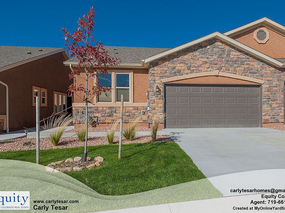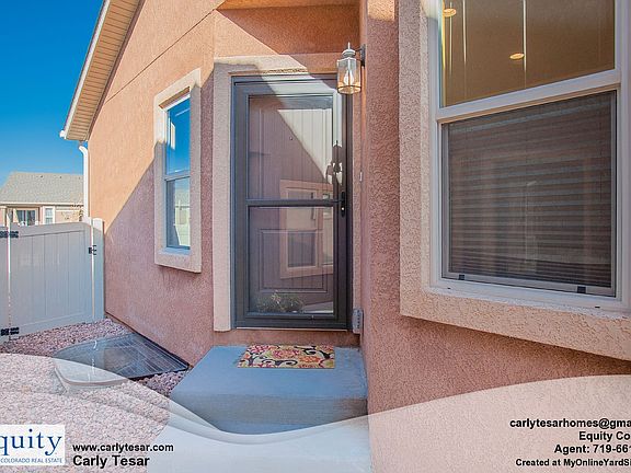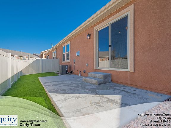 Don't miss this wonderful PATIO HOME loaded with UPGRADES. Backing to a quiet community green space, this home is located on one of the BEST LOTS in this charming MAINTENANCE-FREE community. Fall in love with the SPACIOUS & open floorplan of this 2015 built RANCHER. Gorgeous wide-plank WOOD FLOORS welcome you into the living room with VAULTED ceiling & gas fireplace. Walk-out to a private outdoor space with GAS BBQ line & turf grass. The kitchen features GRANITE counters, 5-burner GAS range, large PANTRY, and STAINLESS-STEEL appliances. RETREAT to the Master Bedroom, which boasts a PIKES PEAK view, large walk-in closet, and a SPA-LIKE 5-piece bath w/ soaking tub. An OFFICE, powder bath, and laundry complete the main level. Basement includes a HUGE family room, TWO additional bedrooms, and bathroom. Only 2 years old, this home is good as NEW! 2-CAR GARAGE w/ built-in storage shelves, AC, HUMIDIFIER, upgraded LIGHTING, keyless entry, RUBBED OIL fixtures, custom WINDOW COVERINGS, & more!
