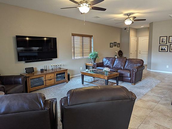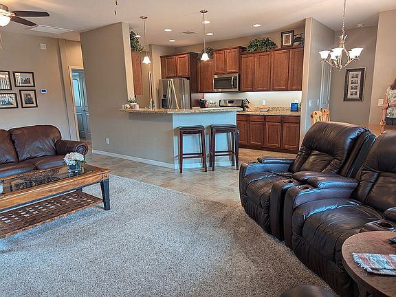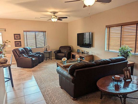 Lovely home in the Viewpoint subdivision of Prescott Valley, just 15 minutes to downtown area. Upgraded stone in front entry. Open concept layout. Kitchen has plenty of storage cabinets, granite countertops and stainless steel appliances. 26 Cu ft Stainless steel refrigerator stays too! Generous use of tile throughout with upgraded carpeting in the living and bedrooms. Spacious Master Bedroom with en suite bathroom. Large tiled walk in shower, Double sink granite vanity, and walk in closet with additional shelving for plenty of storage. Two additional bedrooms and one additional full bath with tub. Laundry room with utility sink. Backyard is a gardeners delight. Already set up with raised beds with drip system for vegetable gardening. (Last 2 photos of the backyard are from the previous year) Lovely covered patio for enjoying your evenings. 2 car garage is dry walled and long enough to park a full sized truck! (9'6" high -7' 10" garage door height and approx 24ft long). No Smoking and No Pet home. Original owners. Shown by appointment only.