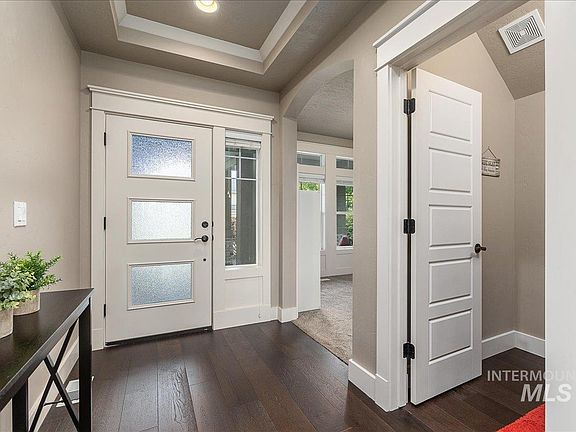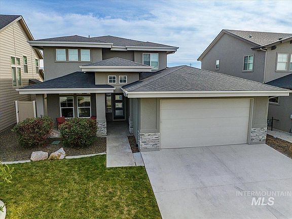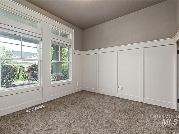 Nestled in Painted Ridge, this west facing home welcomes you with an abundance of natural light and views of the Boise foothills. As you enter the home you'll quickly notice a large den with hidden storage area and powder room. As you continue to walk into the home you'll quickly enjoy the open space where the kitchen meets the family room and dining area. The kitchen features granite counter tops, new appliances and a large pantry. Off of the dining area you will find yourself relaxing outside in your own quiet oasis under a covered patio with plenty of space to entertain or enjoy the peace, serenity and privacy this home offers. The large main level master bedroom offers a soaking tub, large shower, dual vanities and a generous sized closet. As you venture upstairs you'll be greeted by more natural light, three bedrooms, a full bathroom with dual vanities and lots of storage space. This home offers the perfect garage set up for your at-home gym. Excellent neighborhood with a community pool and playground.