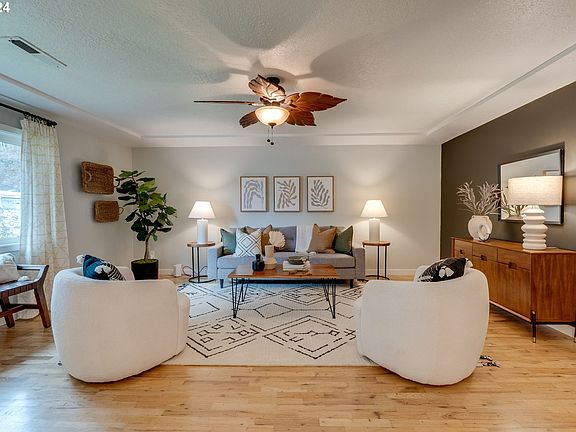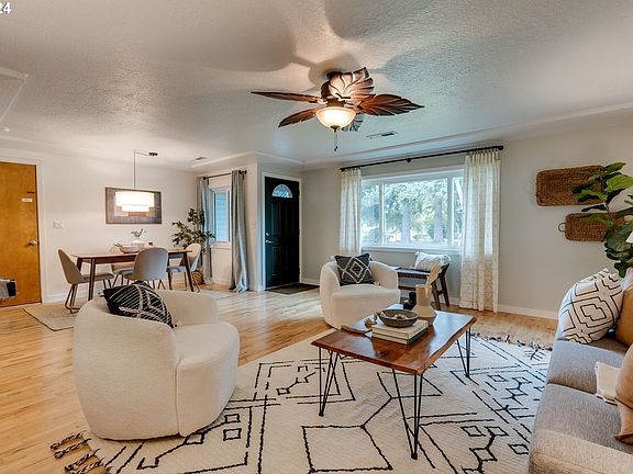 Welcome to this charming mid-century single-level ranch, where timeless design meets modern convenience. Step inside to wood floors and an open floor plan, allowing natural light to flow seamlessly through the spacious living areas. The connected dining room and kitchen create an ideal space for entertaining and modern living, fostering an inviting atmosphere for conversation and connection. The recently refreshed bathroom features new flooring, fixtures, and vanity, offering a fresh, contemporary touch. Down the hall, you’ll find three comfortable bedrooms, including one with sliding doors that open to a generously sized, covered patio—perfect for relaxing by the serene pond and waterfall. The expansive, sunlit yard is a gardener’s dream, complete with raised beds ready for urban gardening. Situated on a corner lot with a large double wide gate, this property also offers potential for extra off street parking, RV parking- with a a sewer dump already in place, or the possibility of adding an ADU (Accessory Dwelling Unit). With the added benefits of a brand-new roof and low-maintenance vinyl siding, this home is move-in ready. The attached garage provides secure parking and direct entry into the home, making it easy to unload groceries or avoid the elements when coming and going. This home is the perfect blend of comfort, convenience, and opportunity!hes1