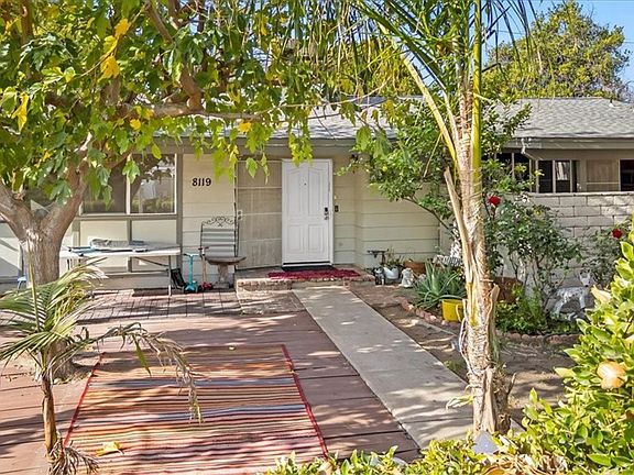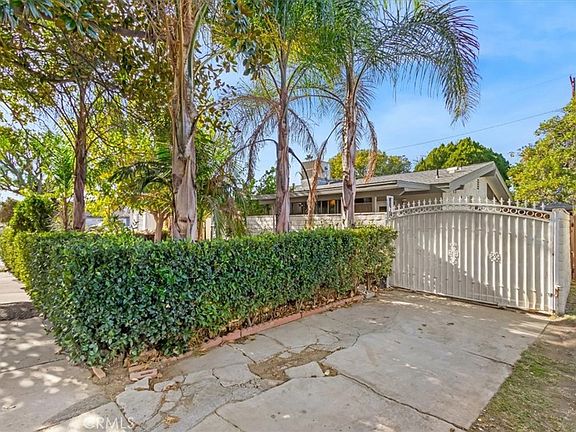 The detached garage has been thoughtfully converted into a bedroom and bathroom, offering endless possibilities for a potential ADU conversion or a private guest suite. Outside, you'll find a serene backyard with a sparkling pool, perfect for entertaining or relaxing, surrounded by lush fruit and palm trees.
