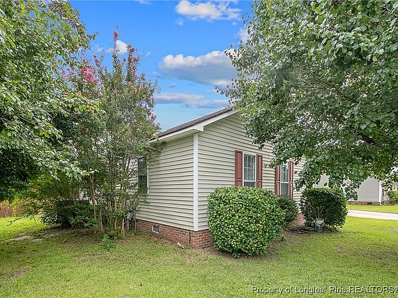 What a spectacular find minutes from Ft. Bragg! This three bedroom, two bathroom home with an extra living area/flex space is move-in ready AND priced to sell!! The front door opens up to an inviting living room with a wood-burning fireplace. The adjacent kitchen has a convenient window overlooking the yard. Washer and dryer in laundry room INCLUDED too! Down the hall to the right, the primary bedroom has LVP flooring and a private exit to the back porch; the primary bathroom has dual sinks and two storage closets. All three bedrooms have fans! The spacious, fenced-in backyard steals the show with a covered back porch, detached garage, storage shed, and above ground pool (2024) with new filter (2025). Also, the home comes with a one-year home warranty included. *BONUS* NO CITY TAXES!!