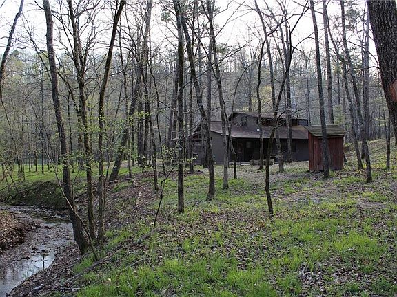 Tranquil Oasis in the Valley with a Creek Running through it houses this Quaint and Classy secluded Cabin in the Woods! Lodge-like cedar interior warms the soul with cathedral ceiling & a stunning stone fireplace, open staircase & lofted bedroom. Another bedroom on main level and bathroom w/water closet, stone n tile walk-in shower. Private backyard overlooking the stream, a stone fire pit and concrete 6x12 covered Grilling Patio w/power surrounded in beauty of Dogwoods, Redbuds, Oaks and Pines! This lot is 1.7 acres, paved street & just a short walk to the Illinois River in beautiful gated Flint Ridge Resort. River access, fishing, canoes & private lakes, where ATVs are street friendly and a way of travel. Clubhouse, swimming pools, golf, tennis all are here inside 7000 acre gated community in NE Oklahoma's Recreational Heartland.