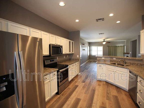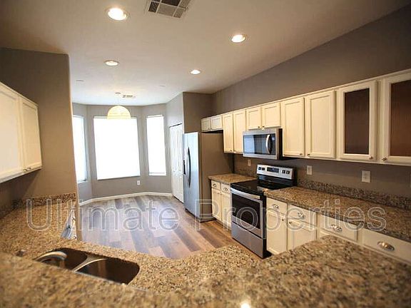 HALF OFF FIRST MONTHS RENT! Absolutely Beautiful Home in Peoria! 3 Bedrooms and 2 Bathrooms with a HUGE living room and fireplace. Kitchen features all stainless steel appliances including a fridge, microwave, dishwasher and range/oven. Washer and dryer are also included! Master suite features a luxurious walk-in marble shower, dual granite countertop sinks, separate toilet room, and a large walk-in closet. 2 car garage with built in shelving. HUGE backyard features a fridge, covered patio, RV Gate, built-in BBQ, grass area, and swimming pool!!