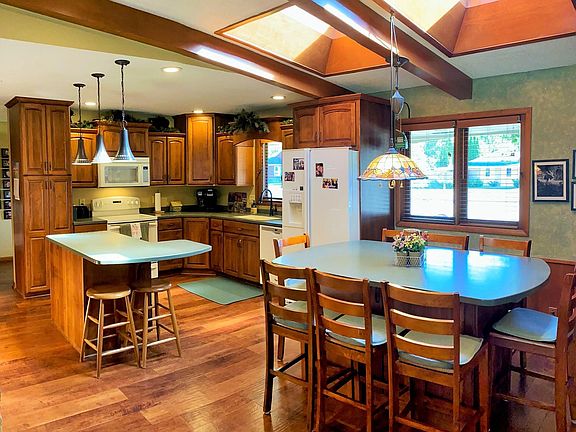 Well-maintained 4-Bedroom Home on a Double City Fenced-in Lot - this property provides easy accessibility to schools, shopping & more and also has a private Backyard Oasis! Inside, the Gorgeous Kitchen has Soft-Close Cabinets, Pantry, 2 Islands and Luxury Vinyl Flooring. The Main Floor also hosts a Spacious Living Room with Gas Fireplace, 3 Bedrooms, 2 Baths and a 4-Season Porch! The large Windows & Skylights let in a lot of natural light to each space. The Lower Level includes a large Family Room, Rec Room, Bedroom & office along with Tons of Storage! Enjoy the Outdoors with a cup of coffee on the covered Front Porch or under the Pergola on the Back Patio surrounded by Beautiful trees & flowers. If a swimming pool or room for kids or pets to run & play is something you're looking for, this Backyard is it!! The Oversized-Attached Garage is Heated & provides enough room for a workbench; there is also extra parking space off to the side and behind the fence. NEW roof and newer AC & flooring. Move right in!! Call us today for more info!
