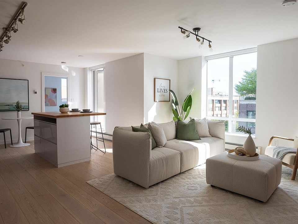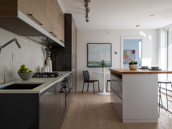 Keefer Block by Solterra is conveniently & centrally located. Measuring 892sf, this 2 bedrm, 2 bathrm & den home features recently installed white oak h/w flooring & has been freshly painted. The kitchen features modern wood veneer & lacquer dual-tone cabinetry, quartz countertops, wood block island, integrated refrigerator & dishwasher, gas cooktop & all in one washer/dryer. The bathrms are furnished with quartz countertops, Carrara marble tub & shower, Kohler fixtures & porcelain tile floors. Underground parking, storage locker & bike locker are provided. Building amenities incl. a common rooftop patio w/ outdoor kitchen & community gardens. Popular cafes, restaurants & shops are practically at your doorstep along w/ the new St. Paul's Hospital & The Clinical Support & Research Centre.
