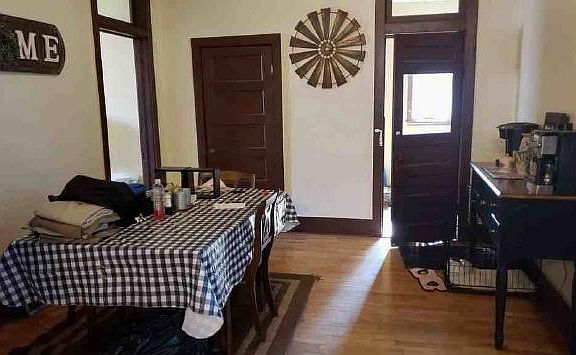 Cute Victorian in downtown Baldwin City. Large living room with original wood trim & pocket doors, large dining room, 2 bedrooms plus sunroom. One bath. W/D hookup in utility room. Original oak flooring throughout. Central A/C. Private parking offstreet. Tenant pays utilities; no smoking; one or two small pets with deposit/pet; owner provides lawn care and snow removal