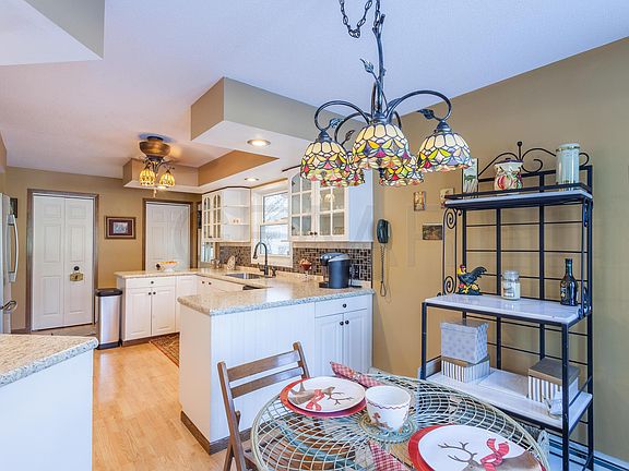Beautiful updated 4 BR,2 BA home. Recently updated kitchen with backsplash, ss appliances. Brand new carpet in LR & 2bedrooms. Master suite features a large walk in shower, updated tile shower with his and her sinks. Gas fireplace in the lower level living room. Zoned heating. Newer windows throughout, fenced backyard with a large 2 stall garage. So many great features to this home!