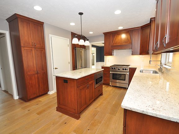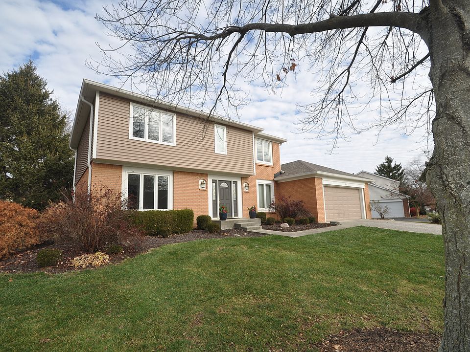 Hard to find updated four Bedroom Two Story with a BASEMENT at this price point in Carmel. Enjoy the wonderful gourmet kitchen with newer floor-to-ceiling cabinets, subway tile backsplash, super sharp marble-like granite, commercial looking Gas Range and Stainless-Steel Appliances. The spacious kitchen also has a pantry cabinet, center island and large breakfast area. The newer and beautiful engineered hardwood floors go from the entry, through the kitchen and into the Family Room, which is accented by a brick, wood burning fireplace and built-in bookshelves. The main level also has a formal living room, dining room, half bath and a nice sized separate tiled laundry room with laundry sink off the back hall. The upper level has a spacious Primary Bedroom with a full bath and walk-in-closet, as well as the additional three bedrooms and full bath. The finished lower level offers additional living space and some great storage. Enjoy the large and private rear yard from the patio and deck. The main level exterior is brick wrapped and has a newer Roof 2019, Furnace 2022, AC 2016. The cul-de-sac location in popular Hunter's Creek Village, is just blocks from Village of Mount Carmel and convenient to Clay Terrace.